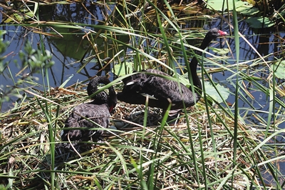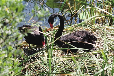 专家介绍,黑天鹅对水质要求比较高,黑天鹅夫妻能够留下来,说明这里的水质比较好,生物种类比较丰富,在这里能很好地生活。同时,希望市民不要过多地打扰它们,不要对黑天鹅进行人工投喂,因为人类食物中含有添加剂等成分,无形中会降低其免疫力,最终影响到鸟类健康。黑天鹅不是本土物种,它没有固定的迁徙路线,希望大家不要过度惊扰。