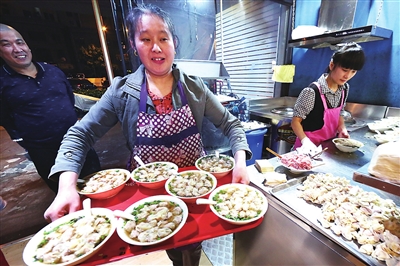 当年的“青岛馄饨”为什么火爆?一是价格便宜,二是上餐速度快。在上世纪八十年代,劈柴院里的青岛馄饨只要两毛钱一碗,有菜有肉、有汤有面,小孩子要一碗馄饨就能吃饱。另外,馄饨现包现下,因为馄饨皮薄馅小,熟得速度快,上餐的速度当然也较快。