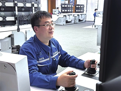 2016年12月,王鹏凭借着精湛的业务技能,加入了自动化码头项目组,成为了首批远程操控员。