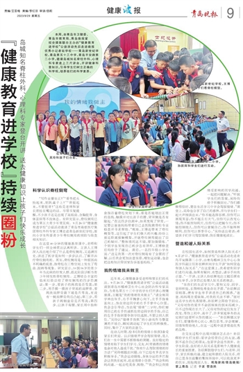 本周,由青岛市卫健委、青岛市教育局、青岛晚报掌控全媒体联合主办的“健康教育进学校”公益活动先后走进晚报优秀小记者站学校——青岛新世纪学校、青岛第五十三中学、青岛平安路第二小学,邀请岛城知名脊柱外科、心理科专家走上三尺讲台,开讲健康科普知识,引导学生们树立正确的科学观,培养他们的科学素养。