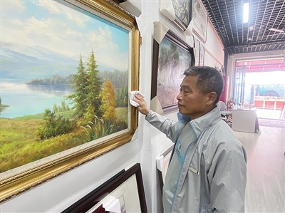 除了露天展出的摊位,青岛文化市场不少商铺也已重新开张,许多老顾客跟着业户从昌乐路文化市场转场至此。“刚刚来了几个老熟人,拿着字画来装裱。”全新的门头、崭新的商铺,65岁张运胜的戈雅画廊已在青岛文化市场开张了,最近他和家人的主要任务是将展陈的字画一点点搬到新店来。“我是2000年在昌乐路文化街开了画廊,因为喜欢字画,又结交了一批朋友,每到周末他们都喜欢来店里坐坐,一起喝茶聊天。”张运胜告诉记者,此次搬家,原本孩子劝他不要再干了,但心里总是割舍不下,所以还是选择装修新店、重新开张。从今年下半年开始,张运胜两头跑,为新店的装修、字画展陈忙碌着。“再收拾收拾就基本差不多了。”如今,他的画廊已跃然于眼前:画廊的前厅展示着时下流行的装饰画,后厅则别有洞天,挂着风格各不相同的书画作品,让人眼前一亮。