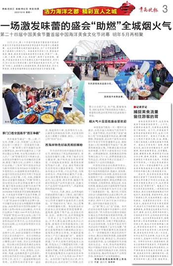 采访中,来自西安的面点师高珊给记者留下了深刻的印象。这位女面点师有着27年的从业经验,在老字号德发长酒店工作,此次带来的面点是“荷塘月色”。她集合了水饺与西式面点的特色,一改传统水饺的做法,将皮与馅料提前做熟后巧妙包饺子,做成莲蓬、青蛙的形状,免去了蒸煮的工序,吃起来更像是一道水饺甜品。这道菜的设计还有一层文化含义,描绘的其实是大唐芙蓉园中,皎洁月光下的荷塘月色美景。在高珊看来,食客通过这道菜品可以吃饺子、看景、品文化,将更多的年轻人引流到老字号中,让传统的老字号基业常青。这次来青参加美食节,高珊格外留心青岛将海鲜融入美食有何创新之举,她也计划把海鲜融入面点,带回西安的老字号。她告诉记者,西安如今备受年轻人欢迎和喜爱,美食是吸引年轻人的一大法宝,如何让他们吃出新鲜、吃出文化,留住年轻人,是她和小伙伴们奋斗的目标。同样作为年轻人喜爱的城市,青岛正在借助中国美食节、中国海鲜美食文化节等餐饮盛会和会展效应,以开放的姿态与各地交流切磋,让海鲜、美食成为年轻人解码城市的一把钥匙,扑面而来的饱腹感和幸福感让更多的年轻人爱上青岛、留在青岛。