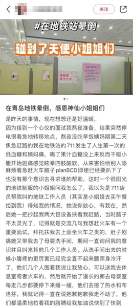次日,颜女士在社交账号上发布了一篇长文,再次感谢青岛地铁的“天使小姐姐”们,文中说道:“看着她们的眼睛,感受到了网上故事和现实的奇妙碰撞……来青岛定居几个月了,一直没什么特别的感觉,直到从她们的笑容感受到这座城市的温度,一瞬间有了归属感。”有了这次温暖相遇的鼓励,颜女士顺利通过面试,拿到了梦寐以求的工作。