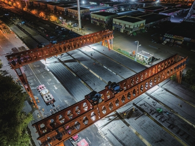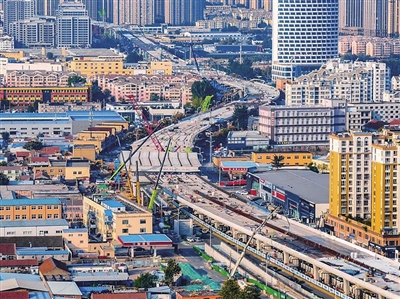 青岛城建公司技术负责人董健告诉记者,为了保证架梁施工顺利实施,根据不同的现场条件,该标段采取了龙门吊、履带吊机械组合两种架梁方式。进入10月以来,项目部更是24小时轮班作业,饱和式资源投入,克服了高难度电力迁改、交通流量大、现场作业面狭窄等不利因素,把握重要节点,盯紧关键工序,顺利完成桥梁主体施工。
