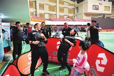 “9分!6分!8分!共计23分!”“可以啊!看我的!”“真是有高手啊”……场地边设置的趣味活动区,依然笑声不断、人气高涨,比分纪录不断被刷新。投壶、飞盘、九宫格等规则简单、玩法多样、趣味性强的运动项目,吸引了众多选手和市民参与,在交流互动中,激发竞技兴趣,享受运动乐趣,进一步夯实全民健身运动的群众基础。