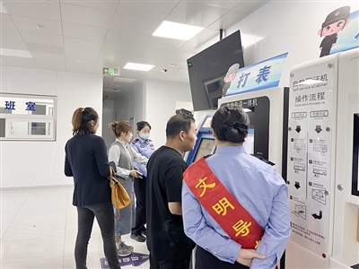 民警在引导市民通过自助服务系统办理业务。 璩丽儒 摄
