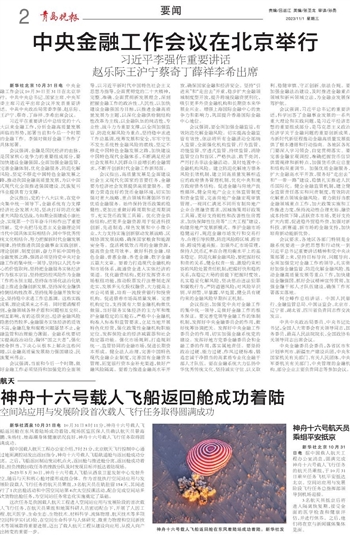 新华社北京10月31日电 据中国载人航天工程办公室消息,圆满完成神舟十六号载人飞行任务的航天员乘组,于10月31日乘坐任务飞机平安抵达北京。空间站应用与发展阶段飞行任务总指挥部领导到机场迎接。