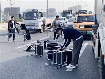 当天上午,休息中的党兵建和赵帅楠相约去小珠山,没想到在胶州湾大桥高架路上遭遇路堵。走走停停半个小时,两人终于通过了拥堵路段。“堵点是一辆小货车,周围散落了一地的椅子。”党兵建说。他和赵帅楠一个眼神交换,彼此心领神会,把车停靠在了路边。