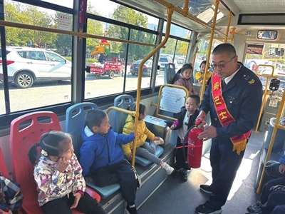 “公交车上都装有一个逃生锤,别看它个头很小,但关键时刻能起大作用。”现场,379路驾驶员于永鸿化身安全讲解员,讲解公交车乘车安全知识,小朋友们走进车厢“沉浸式”参观体验。于永鸿结合幼儿年龄特点,用浅显易懂的语言讲解车内各类救援器材在逃生过程中的用途。随后,消防员张明明向小朋友们讲解了如何防止火灾发生、发生火灾如何逃生、如何报警等消防安全常识,并带领他们参观了消防车,展示了各种随车器材的使用方法。