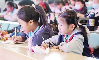 通过由略到详的语段描写,猜猜“他是谁”;根据小作者想要表达的感情,修改文中的词语,使之更能表达感情……课堂上,孙晓蓓在每一个知识点都设置了互动环节,抛出问题引导小记者主动思考。小记者们频频举手,开动脑筋,踊跃回答;听到精彩之处,笔记记个不停。