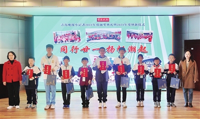 作为岛城创建时间最早、最具品牌影响力的校园记者团队,青岛晚报小记者团队在青岛市委宣传部、市文明办、市教育局、市妇联和市关工委的大力支持下,率先开创了以“新闻采访+研学实践+技能体验+写作培训”为主打特色的青少年课外成长新模式,刷新岛城课外实践教育新思路。11月18日上午,青岛报业传媒集团副总经理曹永刚,青岛市综合实践教育集团总校长、青岛市少年科学院院长聂麦花,青岛晚报执行总编辑胡乐兵,青岛市妇联家庭和儿童工作部二级调研员朱颖,青岛市科协科普部部长解玲,青岛市教育局思政德育处副处长于晓彤,青岛晚报副总编辑张贝,以及优秀校园记者站指导老师,出席了青岛晚报小记者2023年度颁奖典礼暨2024年度纳新仪式。