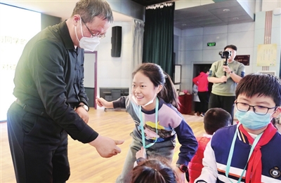“孩子们,我给大家布置一个任务,给你120秒,伸出大拇指,和小伙伴们拇指对对碰,碰到的人数越多越好。”《找到我的好朋友》主题讲座在“拇指对对碰”游戏指令中开启。随着王克伟一声令下,小记者们兴奋互动,即使之前素不相识,也在一次次的拇指碰触中,彼此立即热络起来。有些小记者还专门找到晚报记者“对对碰”,展现出率真热忱的特质。
