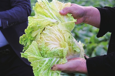 田间地头,研究所所长荆世新随手拨开一棵大白菜的层层“外衣”,露出的菜叶就如同蛋黄颜色一般,这就是胶州大白菜“家族”的新品种——“蛋黄白菜”,还有一种名为“夏妃白菜”,可谓是同种族不同类型的“孪生兄弟”,颜色和个头均有差别。“个头是普通胶州大白菜的一半,单球重在两公斤左右。颜色从外层绿叶到里都是橘黄色,生长周期越长,温度越低,菜叶的颜色越鲜艳。”荆世新向记者介绍白菜家族的新成员。