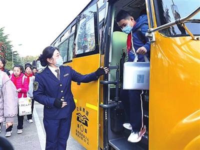 本报11月20日讯 11月20日,崂山八中交运温馨校车正式开通,学生和家长期待已久的校车接送服务终于落地了。崂山区教育和体育局、交运集团青岛温馨校车有限公司有关负责人在校门口迎接首批学生入校。
