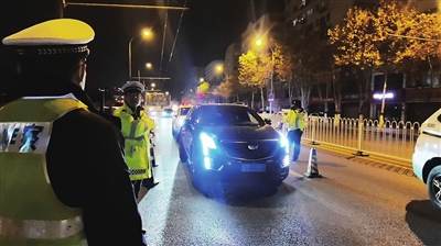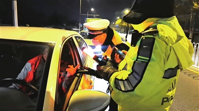 当晚10时30分许,张玉传和同事们来到杭州路余杭路路口,开始设卡夜查。由于是逐车检查,无论是货车、商务车、面包车还是轿车,交警都会要求司机摇下车窗,接受吹气式酒精初检。“警察叔叔辛苦了!”“这么冷的天,你们辛苦了。”很多司机吹气结束后,向交警表达了敬意。