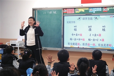 悦耳的下课音乐声响起,“小一生”们三五成群小鸟般飞奔到教学楼前的小广场上,从游戏箱里取出飞盘、皮筋、大跳绳、沙包、跳房子的方格,开心地做起了游戏。课间10分钟里,作为班主任的杨晓璐很忙:既要“眼观六路”,发现哪个学生落单了,她赶紧过去拉着学生一起玩;又要“威风八面”,和孩子们一起丢沙包、跳房子,作为“孩子王”,“十八般武艺”都得拿手。