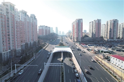 辽阳快速路工程由青岛地铁集团有限公司负责建设,青岛市政空间开发集团所属城建公司施工,工程全长4.7千米。主线高架桥于2022年3月19日进场施工,当年12月26日通车,实现了“当年开工、当年通车”;南半幅地道于今年6月通车。
