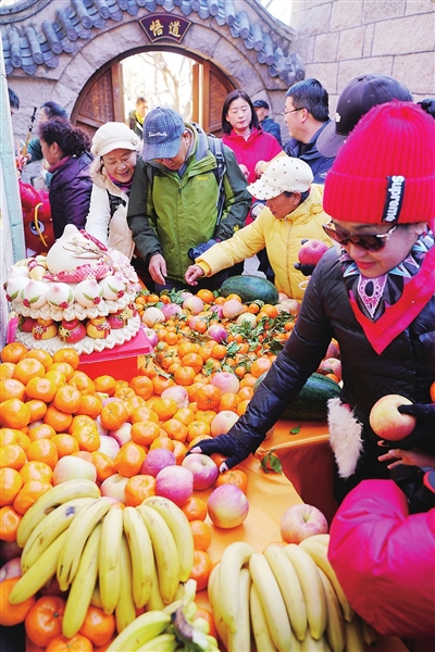 游客结伴而来,或登高望远迎日出,或敲钟打卡逛非遗。其中,崂山非遗、崂山武术等传统文化项目最受欢迎。活动现场,既有“书画剪刻”名家才艺展示、书法家现场书写“福”“寿”赠送游客,又有拳师在音乐伴奏下挥拳舞剑,引得游客驻足欣赏、拍手叫好,部分游客还跟着拳师有模有样地练习起来,形成一道风景线。好玩有趣的“潮玩市集”,集合了崂山传统手工制作和王哥庄特产及非遗手作等,让游客在尽赏满眼山海风光的同时,了解崂山特色鲜明的传统文化和民俗产品。
