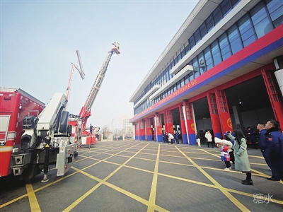 本报1月1日讯 元旦假期,当我们准备跨年时,消防救援人员们坚守在岗位上,随时准备出动。为缓解节日期间执勤压力,2023年12月31日,青岛高新区汇智桥路消防救援站把消防救援人员的家人请进消防救援站,共同见证“火焰蓝”的荣光。