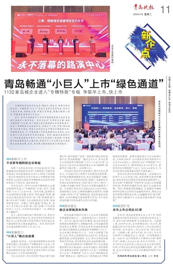 按照工业和信息化部、中国证监会《关于高质量建设区域性股权市场“专精特新”专板的指导意见》,青岛蓝海股权交易中心取得了国家第一批在区域性股权交易市场设立专精特新专板的资质,这也标志着我市专精特新企业资本市场培育进入了体系化、规范化阶段。