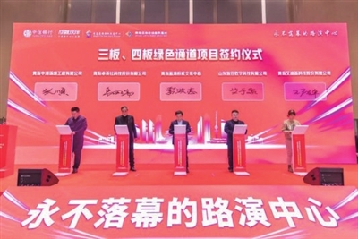会上,青岛中海环境工程有限公司、青岛艾迪森科技股份有限公司、青岛卓英社科技股份有限公司、山东智豆数字科技有限公司等4家企业与蓝海股权签订绿色通道协议。未来,将有更多企业通过转板实现早上市、快上市。