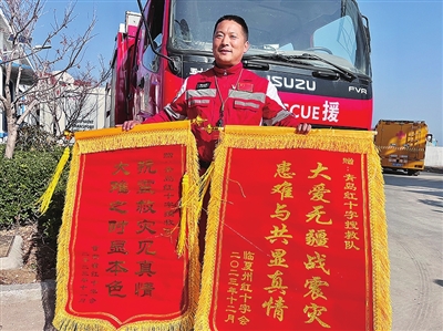 “这是我们第一次做赈济工作,好多事需要去摸索。此次任务中,我负责在大本营协调各类物资,所以大家都叫我‘营长’。在救灾现场,也经历了几次余震,但是我们都提前做好了应对困难的心理准备。”2016年就加入青岛红十字搜救队的队员徐立萍已经参与过多次救援行动。对于此次在甘肃的任务,徐立萍有着一份特殊的感情。“2018年,我在甘肃兰州经过救援培训,取得了中级证书,一直对甘肃怀有感激之情,所以听说此次任务,我马上报名参加。”