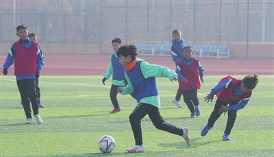 本报1月3日讯 “加油!加油!”3日,迎着晨光,城阳区小学生球队和西藏“阳光助梦体育少年教育专项基金”的足球少年混编后进行的汇报比赛,在城阳区第二实验中学如火如荼进行,来自西藏日喀则市的27名小学生积极参与其中。