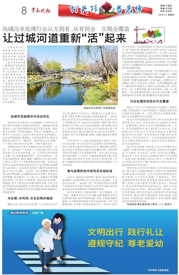 按照计划,在我市污水处理厂出水水质已全部达到一级A及以上标准的基础上,环胶州湾、渤海湾和沿河的20座污水处理厂出水水质将达到准地表水IV类标准,占全市污水处理厂总数的80%。我市河道都是季节性河流,经常断流,提标后的污水处理厂的尾水,将主要用于河道生态补水。到2025年,再生水的利用率要达到55%以上,每年为河道补水将达到4亿多吨。通过水处理、水利用、水生态同步推进,青岛市河道生态基流和水环境质量持续改善,推动实现“水流动起来、水量丰起来、水质好起来、生境活起来、风景美起来”的美好愿景,增强市民的获得感和幸福感。