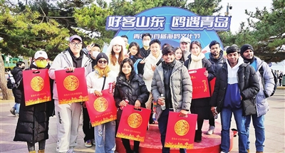 21日,栈桥边拍海鸥领青岛特产活动继续加码,14名外国友人也来“鸥”遇。