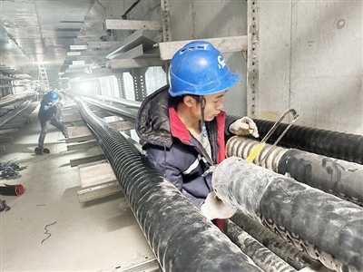 青岛亿联建设集团股份有限公司项目负责人李庆涛介绍:“本项目地下管线交错、地质条件复杂,同时涉及2条地铁线路运行区间,施工难度大、风险高。亿联集团项目部组织相关专家进行多轮方案论证,优化施工组织,全力保障人员、机械等资源要素投入,经过近100天的昼夜奋战,顺利完成了电力管廊主体结构施工。目前正在加班加点进行临时道路连锁块铺装,力争尽早恢复道路畅通。”