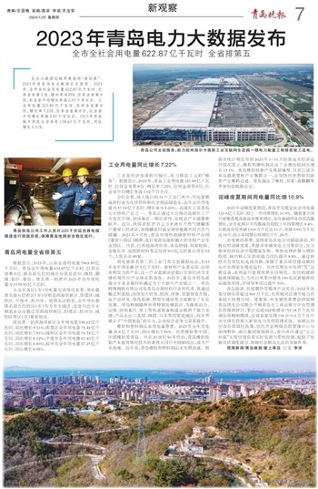 ~~~全市全社会用电量622.87亿千瓦时 全省排第五