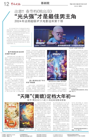 “儿子说,‘光头强’越来越好了,电影让人越来越感动。”岛城的窦女士陪着儿子从幼儿园开始刷《熊出没》,一直刷到儿子上小学五年级,“今年过年还是首选《熊出没》。”她表示,这些年《熊出没》的故事一年讲得比一年更有意义,越来越贴近当年的热点话题,“很暖心,放心让孩子看,大人看着也挺有意思。”不仅在青岛,全国很多城市也是这般“小带大”追看《熊出没》很多年。值得注意的是,《熊出没》近几年在三四线城市中票房格外显眼,这也使该系列累计票房有了更好的基础。