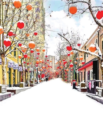 白雪映照红灯笼,历史城区年味十足。余瑞新 摄