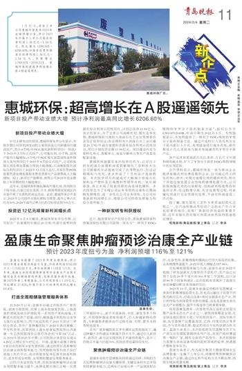 1月31日,青岛上市公司惠城环保发布2023年业绩预增公告,预计2023年归属于上市公司股东的净利润1.36亿元~1.56亿元,同比增长5398.06%~6206.60%;扣除非经常性损益后的净利润1.36亿元~1.56亿元,同期增长1789.97%~2039.01%。惠城环保的超高净利润增长在A股遥遥领先。