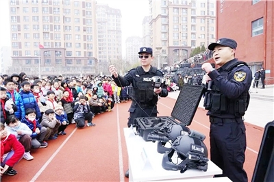 3月8日,青岛市公安局特警支队会同青岛市公安局市北分局反恐大队、刑警大队、宣传科、浮山新区派出所走进青岛市北区第二实验小学,为学生们带来了一场别开生面的防恐防暴安全演练活动。