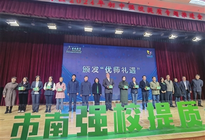 本报3月22日讯 8所公办初中350余名教师陪伴2500余名市南初三学子晚间学习,个性化的成长指导和师生间的温情陪伴,让家长的满意率达到了100%,这些初三老师的无私付出令人动容。3月22日下午,市南区2024年强校提质专题推进会在青岛26中教育集团浮山校区召开。会上,市南区教育体育局局长焦淑军发布了《市南区强校提质初中毕业年级专项支持行动七项举措》,从强化专业成长支持、专项“礼遇优师”、优化评价机制、推行疗休养制度、推进改革创新、加强宣介服务进行了全面激励和保障。
