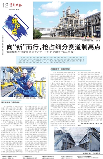 新质生产力已成为高质量发展的重要推动力。作为中国第一家民族染料企业,青岛海湾精细化工有限公司(简称海湾精化)的百年发展史就是一部求新求变的奋斗史。面对精细化工市场发展的挑战和机遇,海湾精化锚定绿色与高端,正在全力向“新”而行。今年一季度,海湾精化捷报频传,双乙烯酮、乙酰乙酸甲酯产量双双增长超30%,硅溶胶产品稳居中高端市场占有率第一,“海洋牌”硅胶接连拿下大单……