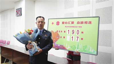 本报4月10日讯 49岁的王万立是市南公安分局治安管理大队的一名民警。2023年5月,他接到一个陌生电话:“您好,我是市南红十字会的工作人员,刚刚接到中华骨髓库的通知,一名血液病患者与您的骨髓配型相合,需要移植造血干细胞延续生命。”得知有机会挽救别人的生命,王万立激动的同时,又担心家人是否会支持他。