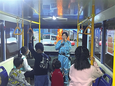 “同学们,谁能告诉我,遇到火灾时应该怎么办?”在消防安全体验场馆,小记者们给出了各种各样的答案。“发生火灾后同学们应快速进行逃生,逃生到安全区域后要及时拨打119……”讲解员给出了标准答案,更重要的是,要弄清楚各种消防标志颜色和图案的含义。在讲解员的带领下,小记者们拿起模拟报警电话,学习如何正确报警。