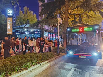 “我们是一家三口过来玩,看了灯光秀,还想尝一下上杭路的网红店,稍不注意就玩到了晚上10时。”外地游客韩先生告诉记者,他们住宿的酒店距离此处较远,打车费大约60元,游玩景点时仅靠打车,将是一笔不小的出行费用。“没想到来了公交站还有不少车,真是很方便!”徐先生表示,来青三天中,一家人几乎都是乘坐公交出行,而时时有车坐、处处有服务的温暖出行,也给他留下了深刻的印象。“我看有的公交车上张贴了与线路有关的出行攻略,感觉驾驶员的工作很细致,为乘客考虑得很周到,也展现了青岛交通对待游客的态度。”