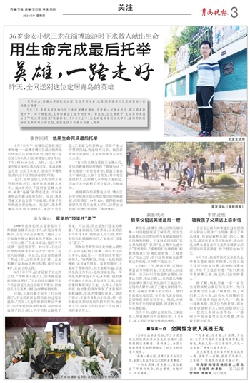 36岁泰安小伙王龙在淄博旅游时下水救人献出生命~~~昨天,全网送别这位定居青岛的英雄