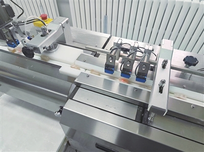 张春伟带领记者来到了包装车间,高粱饴经过冷却、切块之后进入最后的包装环节,排列整齐的高粱饴经过一段流水线之后直接开始包装。“以前都是人工包装,这样不仅生产效率低,同时还有生产安全隐患。所以我们引入了全自动的包装流水线。”张春伟说,“你看这台机器,不仅能实现自动化包装,还可以实现自动化称重,生产出不同品类的高粱饴产品。”