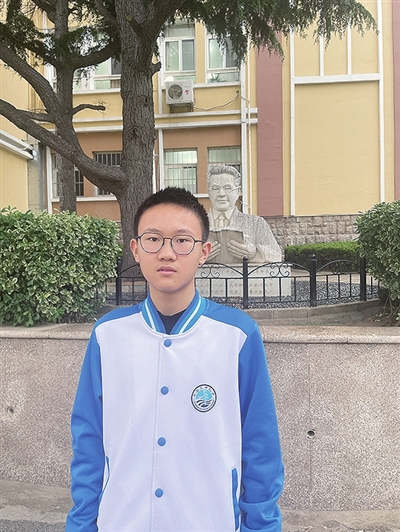 “学习中遇到难题,我总是用苏轼的‘谁怕?一蓑烟雨任平生’来激励自己,这句话让我更加自信,相信题目总会有答案。”青岛二中自招成绩放榜后,陈俊彤的名字出现在强基班,面对困难,这位小学霸自有一股韧劲。他说自己很欣赏王国维提出的三重境界,并加以思考,化作自己的学习方法。“第一层是衣带渐宽终不悔,为伊消得人憔悴。我的理解是要努力练习,通过多做题来提高熟练度,这样才能在做题时更加顺畅;第二层是独上高楼,望尽天涯路。课后,我会去研究一些偏难的题目,预习一些高中知识,这样才能在附加题中取得不错的成绩;第三层是众里寻他千百度,蓦然回首,那人却在灯火阑珊处。我们要回过头来看一下错题,一定不要在考试前几天急于求成,要稳住心态,才能有不错的临场发挥。”