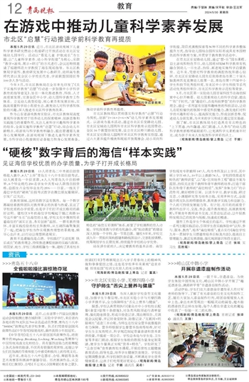 今年3月,市北区教体局在全市率先印发了《关于实施科学教育“启慧”行动进一步加强中小学科学教育的指导意见》,旨在一体化推进教育、科技、人才高质量发展,完善全区中小学、幼儿园科学教育工作体系。立足幼儿典型经验、核心素养和发展目标,实践高质量科学幼小衔接生态,激发幼儿对科学感知体验的兴趣,深入推进市北区科学教育改革。