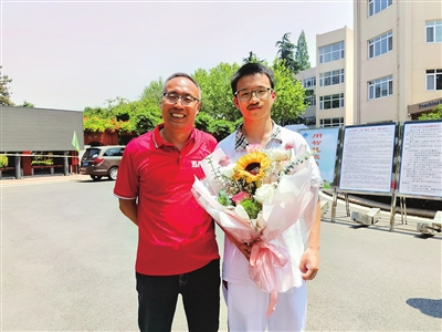 看着学子们陆续走出考场,高登营赶紧上前为他们送上祝贺。学生们看到高登营后,也纷纷上前拥抱,有学生手捧鲜花前来跟恩师合影留念。“高考结束先适当休息一下,后面还有‘综招考试’和‘强基考试’、高考志愿填报等事项,这期间可以规划一下自己的大学生活,等到大学录取通知书下来后,再去学学车,到社会中适当吃点苦,锻炼锻炼,增强一下对社会实践的认识。”高登营叮嘱学生。 记者 于娜
