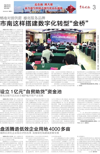 青岛晚报走在前 挑大梁 奋力谱写中国式现代化山东篇章A03市南这样搭建数字化转型“金桥” 2024-06-22 2 2024年06月22日 星期六
