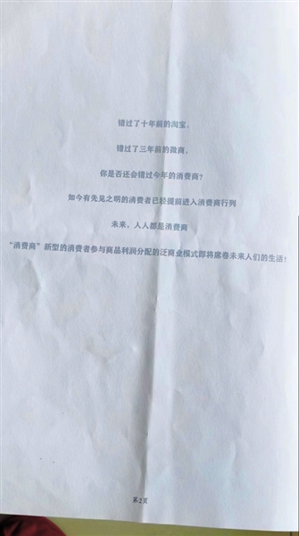 近日,读者王女士拨打青岛晚报新闻热线82860085,称在2019年加入月亮湾海参成为消费商,支付5万元获得海参大礼包,王女士要推广其海参产品,5年后可返还本金。现在协议即将到期,王女士履行协议介绍来不少亲朋好友来买海参,但是月亮湾海参却毁约了,拒绝返还本金。“消费商”对消费者是利好还是“坑”,记者展开采访。