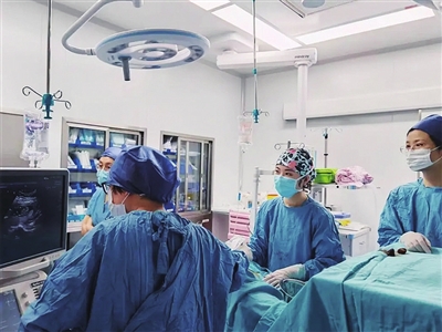 面对这一紧急状况,医院迅速组织产科、胎儿医学中心、神经康复科、超声科及妇产麻醉科等多学科会诊,决定实施射频消融减胎术,保留发育正常的胎儿。虽然心中万般不舍,但为了能让另一个宝宝健康出生,刘女士和丈夫综合考虑后决定减胎。