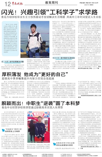 ~~~青岛为明学校毕业生王士权热爱动手发明解决生活难题 用高中三年时间坚定人生目标
