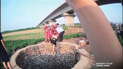 14名救援人员赶赴现场后发现,井口直径约2米,深约4米,水深约1米,被困男子意识清醒,无法爬回岸上。救援人员立即将半身式安全板带放下,指导被困人员穿戴好。确保安全后,救援人员利用绳索将被困人员慢慢拉到井上,将其救回岸边。